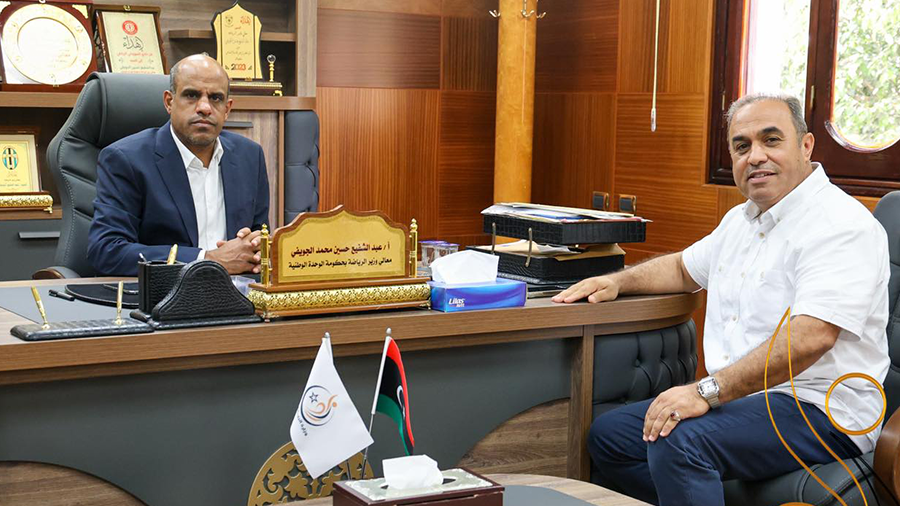 ناقش وزير الرياضة بحكومة الوحدة الوطنية، عبد الشفيع الجويفي، مع رئيس الاتحاد الليبي لكرة القدم عبد المولى المغربي عددًا من الملفات المهمة المتعلقة باللعبة.